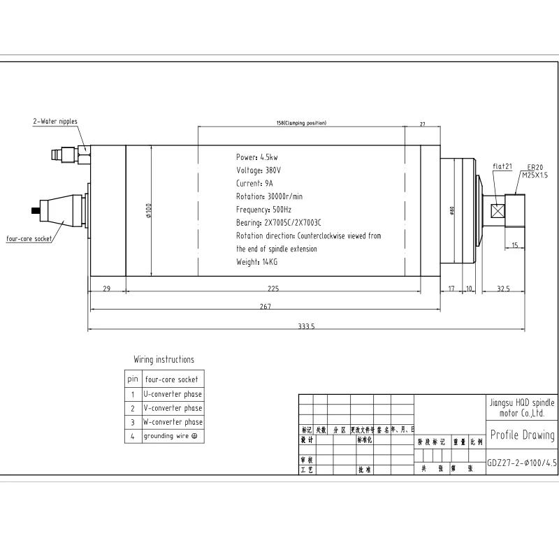 Be the first to review “HQD GDZ-27-2 4.5KW 30000rpm High Speed Water Cooled Spindle motor”